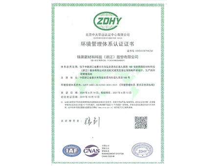 環(huán)境管理體系認(rèn)證證書