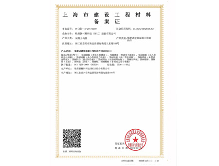 上海市建設(shè)工程材料備案證