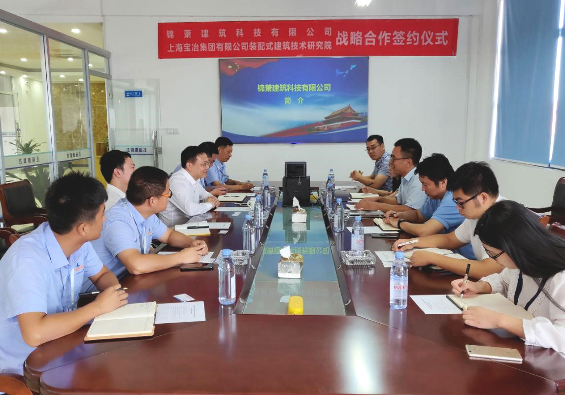 2018年8月28日下午,公司與上海寶冶集團(tuán)有限公司裝配式建筑技術(shù)研究院戰(zhàn)略合作簽約儀式順利舉行。寶冶集團(tuán)裝配式建筑技術(shù)研究院首席研究員劉威,錦蕭建筑科技有限公司董事長(zhǎng)李軍等雙方人員共同參加了簽約儀式。