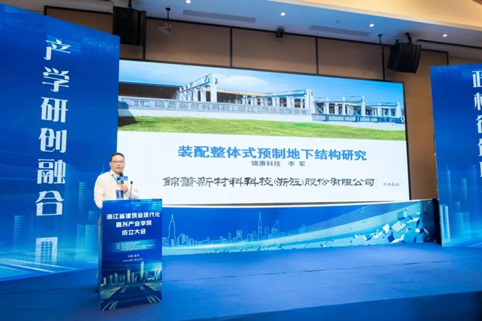 大會由嘉興市住房和城鄉(xiāng)建設局主辦,嘉興市建筑工業(yè)學校、嘉興職業(yè)技術學院、嘉興市城建職工培訓中心及嘉興市綠色建筑與建筑工業(yè)化協(xié)會共同舉辦。成立儀式上,宣讀了學院30家成員單位名單并進行了授牌儀式。作為學院理事單位之一,錦蕭科技董事長李軍應邀出席大會接受授牌,并受邀作《裝配整體式預制地下結構研究》專題報告,與參會領導、專家、學者共同探討裝配式建筑領域研究,持續(xù)發(fā)揮錦蕭專業(yè)價值,助力引領嘉興市裝配式建筑高質量發(fā)展。